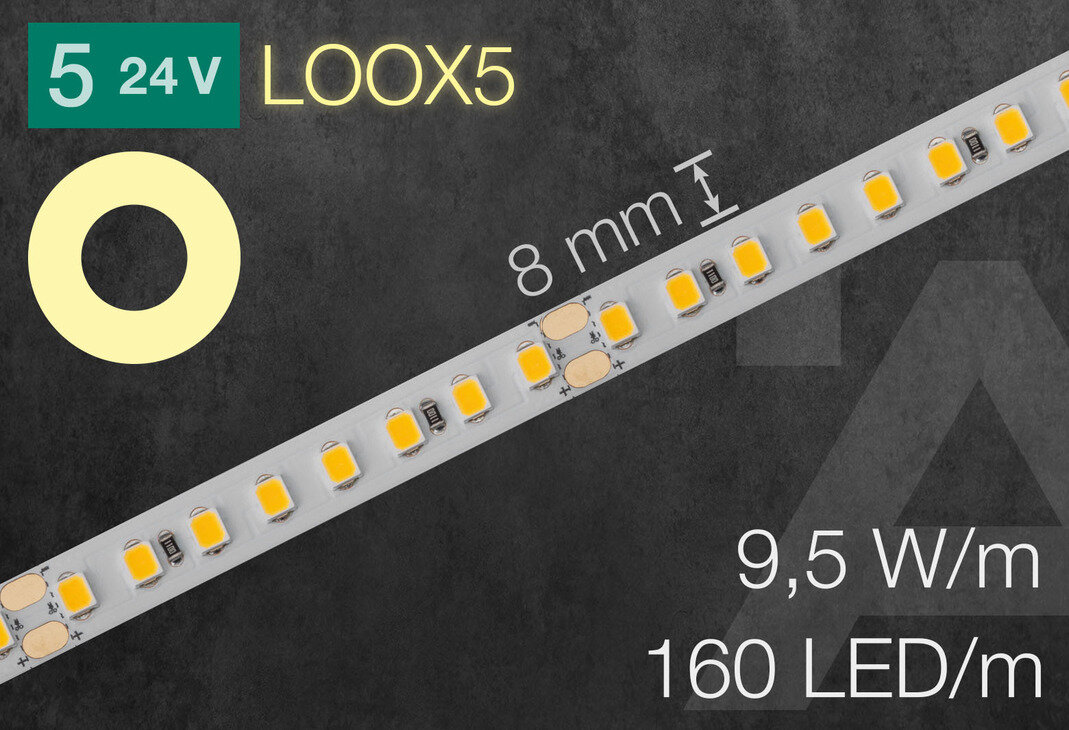 LED pás Häfele Loox5 LED 3148, 24 V, 8 mm, 160 LED/m, 9,5 W/m, IP 20, 4000 K, neutralna, L 50 m