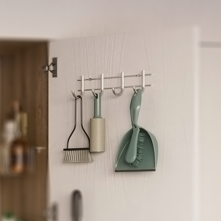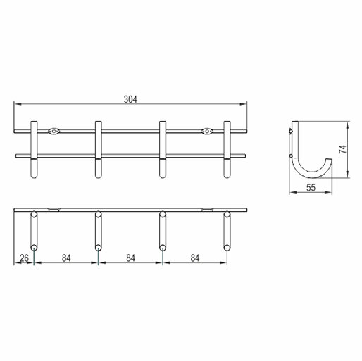 Vešiak je dlhý cca 30 cm a vysoký 74 cm. Je vyrobený z odolného kovu vo farbe chrómu, ktorý zaručuje, že sa háčiky neohnú ani pri veľkom zaťažení. Montáž vešiaka je veľmi jednoduchá - priskrutkuje sa na dvoch miestach k stene alebo nábytku.