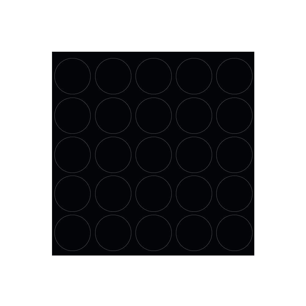 Krytky samolep.fi 14 mm U999 TM9 čierna mat (1 plátok= 25 krytiek)/ 044