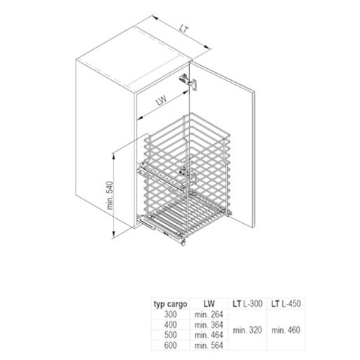 Výsuv spodný bez uchytenia na čelo pre koše na bielizeń L300 mm / Rejs